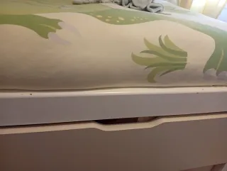 Cama nido con un diseño moderno y funcional,está muy bien ,solo tiene unos pequeños esconchones que se puede apreciar en la foto - Estructura principal en color blanco. - Cajones frontales en tono beige. - Fabricada con materiales de calidad.