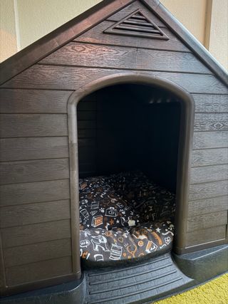 Caseta para perros de exterior, con un diseño clásico y funcional con colchon a medida. Todo se compro hace un mes para un perro que al final no vino y no se esta usando. Esta completamente nuevo. Todo costo 150€. No sale en la foto pero tambien incluye dos mantas nuevas una negra y otra gris. Y dos cojines blancos. - Material resistente y duradero. - Base elevada para aislar del frío y la humedad. - Techo a dos aguas para el drenaje del agua. PRECIO NO NEGOCIABLE ESTA TAN BARATO PARA QUE SE VENDA RAPIDO