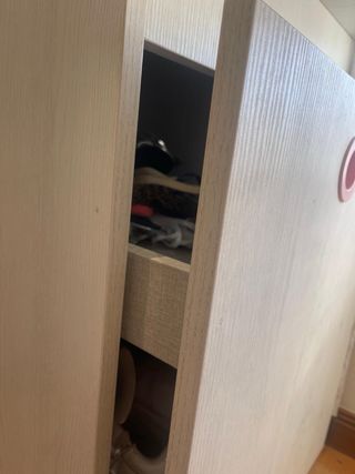 Se vende pack de cama BRIMNES con dos cajones de almacenaje y armario a juego. Ideal para optimizar el espacio. Producto + precio por separado: - Cama individual BRIMNES con dos cajones (se transforma en cama doble): 330. - Armario BRIMNES blanco: 100. - Mesa de noche MALM blanca: 50.