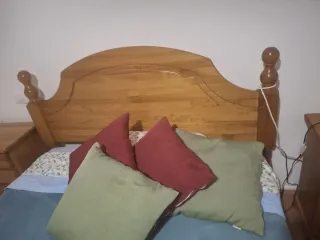 Se vende conjunto de dormitorio de gran calidad y robustez. Incluye: -2 Camas individuales: Estructuras de madera, muy estables. -3 Colchones: 2 individuales (Uno está perfecto, el otro presenta desgaste, se entrega como extra si se desea) + 1 de matrimonio en buen estado. Ideal para habitaciones juveniles, segundas residencias o proyectos de decoración. La madera natural permite barnizar o pintar fácilmente. - Precio total: 300 € - Estado: Muy bueno y cuidado. ¡Oportunidad por renovación de mobiliario!