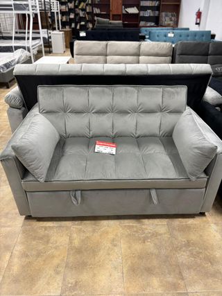 Sofá cama de terciopelo en color gris. Un mueble versátil y elegante para tu hogar. - Diseño moderno con acabado capitoné. - Patas discretas para un estilo limpio. - Tiradores para facilitar la apertura de la cama - Incluye 2 cojines - Disponible en 2 colores NEGRO - GRIS MEDIDAS: Ancho: 138.5 cm Fondo: 92.5 cm Alto: 77 cm Cama: 178 x 112 cm . Pago en casa . Entrega a domicilio llámanos al 66.7.9.6.31.3.6