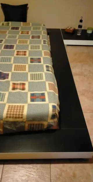 Se vende conjunto de cama con mesitas de noche a juego. - Cama con base y colchón. Marca LOMONACO 135x190 - Dos mesitas de noche con cajón de 40x25 TODO INCLUIDO POR SOLO 30€!!!!