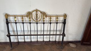 Elegante cabecero de cama de metal dorado estilo antiguo. Medidas: 140X140