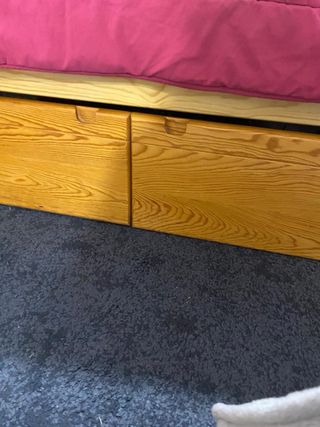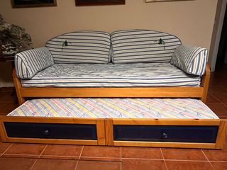 Cama nido con dos colchones incluidos. Ideal para aprovechar el espacio. - Estructura de madera. - Colchones con funda de tela. Se tiene que recoger de una buhardilla de una casa.