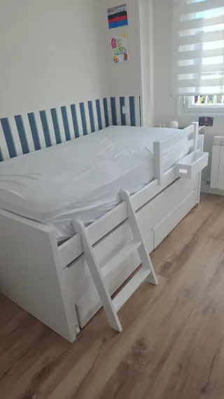 Cama nido en perfecto estado, ideal para aprovechar el espacio. - Medidas de 90x200 cm. - Diseño moderno y funcional. - Incluye cajones de almacenamiento. - Hecha a medida en tienda del Europolis Está en muy buen estado