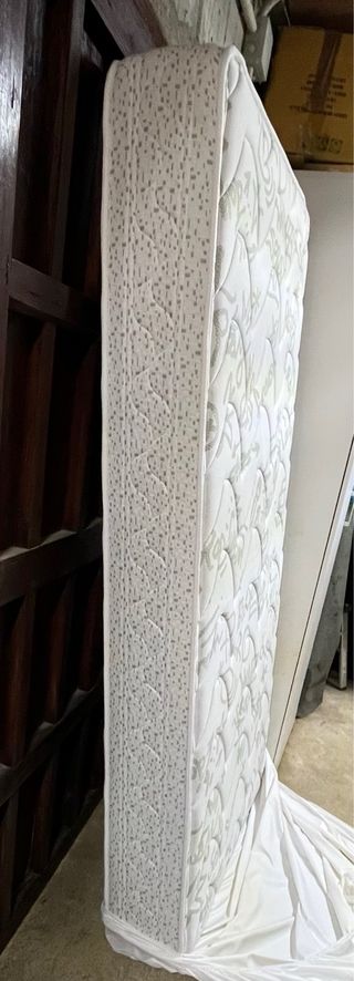 Conjunto de somier y colchón de la marca Flex. El colchón presenta un diseño floral en tonos claros. - Tejido con estampado floral. - Base de somier resistente. - Colchón con muy poco uso y siempre con funda protectotora.