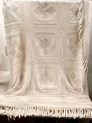 Colcha de crochet hecha a mano, perfecta para cama de 90cm. Su diseño intrincado añade un toque artesanal a cualquier habitación. - Tejido de algodón 100% - De estilo bohemio o "boho". - Diseño con detalles de pompones y calados. Peso 3,68 kg Ref. 4 ¡Hacemos envíos! 🛍️Tienda Solidaria de la ONG Madre Coraje. Nos encontramos en Calle Punta Alta 24 polígono San Luis. 🕰 Estamos de lunes a jueves de 8-18h y viernes de 8-14h.