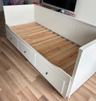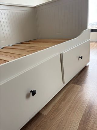 Cama nido de Ikea modelo Hemnes en color blanco. Ideal para aprovechar el espacio. - Estructura de madera. - Cajones integrados para almacenamiento.