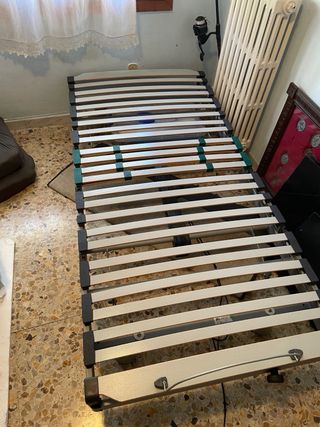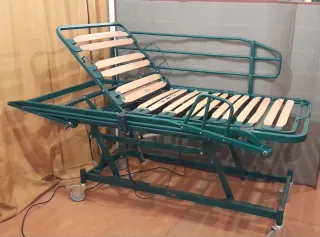 Cama articulada de metal y madera. Se encuentra en buen estado. - Perfecta para personas que buscan comodidad y funcionalidad. - Estructura resistente y estable. - Diseño elegante y moderno. Medidas; 90x190cm.