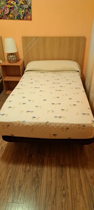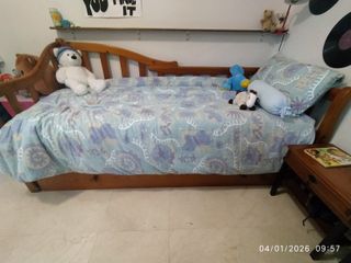 Se vende estructura de cama individual con colchón. Tengo dos, los dos se venderian por 180€ Colchones como nuevos, tengo 3 colchones de 90x200 y 1 de 90x190 - Medidas: 90x200 cm. - Materiales: madera y tela.