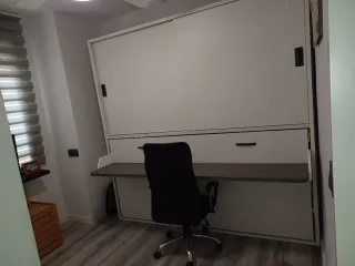 Armario con cama abatible de 90x200 cm. Incluye colchón. El armario tiene una parte con lejas y la otra para colgar. - Estructura de madera.