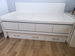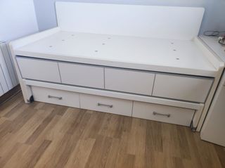 Se vende cama nido juvenil de muy buena calidad. Consta de dos camas y tres cajones muy amplios con mucho espacio para el almacenaje. La parte inferior sale completamente en bloque lo que facilita su limpieza. Está en muy buen estado