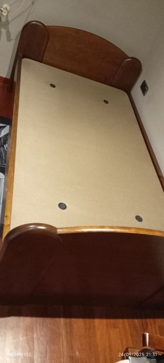 Se vende cabecero de cama de madera con un diseño curvo en la parte superior y somier de 90. - Estructura del cabecero de madera. - Soportes metálicos para el somier.