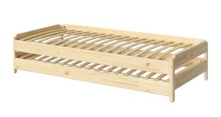 Estructura de cama nido de madera, apílale, ideal para optimizar el espacio. - Listones de madera para soporte. - Diseño sencillo y funcional. - madera natural - medidas 80 x 200 cm solo la cama, se encuentra desarmada lista para transportar. muy fácil el montaje. cama ikea nido niño adolescente somier