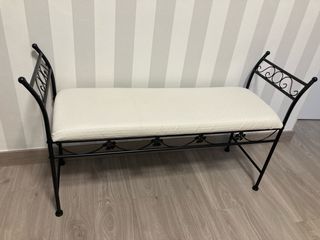 Elegante banco tapizado con estructura metálica, ideal para el pie de cama, recibidor o cualquier rincón de la casa. - Diseño en metal. - Asiento confortable y acolchado. - Patas metálicas estables.