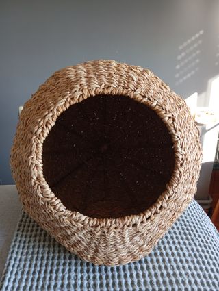 Acogedora camita para gatos de Zara Home. Perfecta para que tu mascota descanse. - Material tejido de fibras naturales. - Diseño redondo y espacioso.