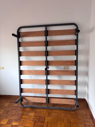 Somier de 135cm en excelente estado, casi nuevo. - Estructura robusta de metal. - Láminas de madera para un buen soporte.