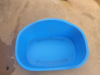 Cama ovalada de plástico resistente, ideal para perros de tamaño grande. Su diseño permite una fácil limpieza. - Material: Plástico - Forma: Ovalada - Color: Azul