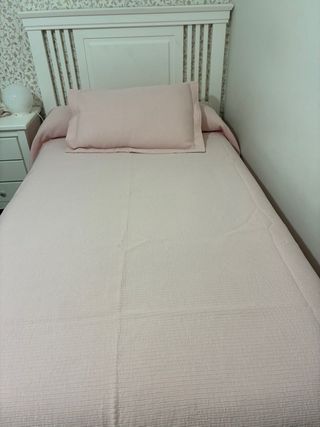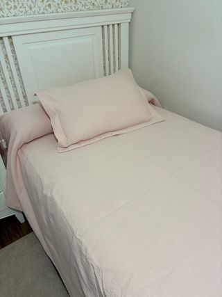 Colcha de tela en color rosa para cama de 105 cm. Cojin 70 * 50 cm - Diseño liso y elegante. - Tacto agradable.