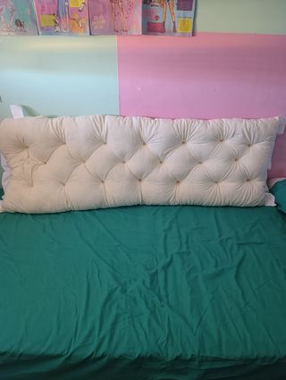 Cabecero de cama con un diseño acolchado y elegante. - Acolchado con botones. - Ideal para camas de 1.50m. nuevo a estrenar Tiene goma en la parte trasera para sujetar y flecos en los bordes. Modelo cuadrado