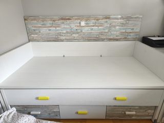 Cama nido de 90x190cm. Incluye ambos colchones (principal e inferior). El cabecero también viene incluido.