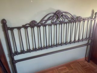 Elegante cabecero de cama con un diseño clásico y ornamentado. Añade un toque de estilo a tu dormitorio. - Estructura de hierro forjado resistente. - Detalles decorativos en la parte superior. - Acabado en color negro.