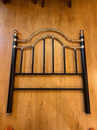 Elegante cabecero para cama de 135 cm con un diseño curvo y detalles ornamentales. - Estructura de metal resistente. - Acabado en color dorado brillante. - Diseño curvo con adornos en la parte superior. Mobiliario para recoger en Navaluenga - Ávila.