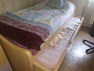 Se vende cama en perfecto estado, muy práctica y con gran capacidad de almacenamiento, ideal para habitación juvenil. ✅ Medidas: 209 cm (largo) x 86 cm (fondo) x 83 cm (alto). ✅ Incluye 3 amplios cajones con tiradores grandes y cómodos. (Posibilidad de tiradores blancos) ✅ Fácil de combinar con cualquier decoración. ✅ Estructura robusta de madera, resistente y duradera. ✅ 2 colchones de 80 cm incluidos. 📦 Muy práctica para ahorrar espacio, ya que los cajones permiten guardar ropa, juguetes, sábanas, etc. No dudes en preguntar para ampliar información. Precio negociable.