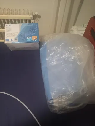NUEVO Colchón antiescaras tipo 2 tiene licencia sanitaria. - Incluye bomba de aire. Para prevenir la aparición de úlceras en personas con movilidad reducida. Sistema de presión alterna para distribuir uniformemente el peso. Compresor ligero y silencioso. Resistente al agua, sólo limpiar las manchas. Está marcado con un nombre pero nunca se ha usado. La altura que alcanza el conchón desconocida por no haber sido usado.