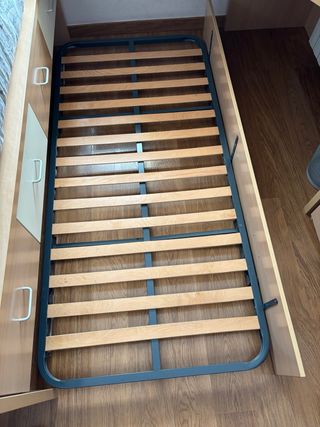 Cama completa, somier de 9 patas para mayor confort, tiene poco tiempo de uso. El colchón esta como nuevo, el somier tiene algunas marcas, pero una vez puesta la ropa de cama no se ve nada.