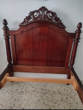 cama de caoba 1.10m. Rebajada a 80€ porque al moverla se ha despegado (este detalle se ve en la última foto) - Cabecero con detalles tallados.