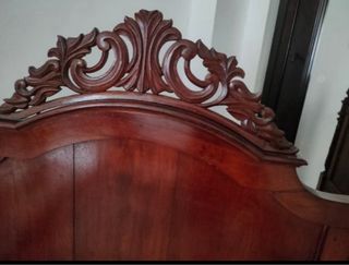 Preciosa cama antigua de estilo francés. Se encuentra en buen estado, lista para darle un toque clásico a tu dormitorio. - Estructura de madera maciza. - Cabecero y piecero con detalles decorativos. - Ideal para un dormitorio con encanto.