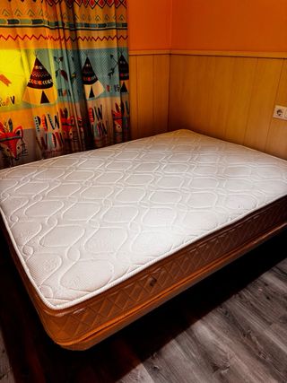 Se vende conjunto de colchón y somier de 135cm con muy poco uso. Se compro para habitación de invitados y se ha usado dos veces - Colchón con tejido aloe vera. - Somier de madera.