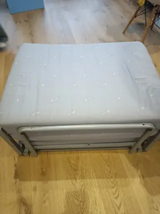Cama plegable individual apenas usada. Es el modelo LYCKSELE LOVAS de Ikea. Viene con una funda en color blanco roto. Las medidas cerrado son 80 cm ancho x 100cm largo y 87cm alto. Las medidas abierto son 80 cm ancho x 188 cm largo y 49 cm alto (incluye colchón).