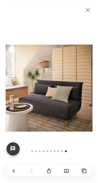 El sofá cama de 2 plazas gris antracita es la solución de diseño que lo resuelve todo: un sofá minimalista para tu día a día que se transforma en una cama doble de 140cm. * Doble función real: sofá de diseño de día, cama de 140x193 cm de noche para dos personas. * Mecanismo clic-clac rápido: transformación inmediata y sin esfuerzo para visitas inesperadas. * Estructura estable: un mueble robusto diseñado para aguantar el uso como asiento principal del salón. * Estética atemporal: el gris antracita y la madera de haya son una combinación que nunca pasa de moda. Hemos utilizado una vez. Queda como nuevo.