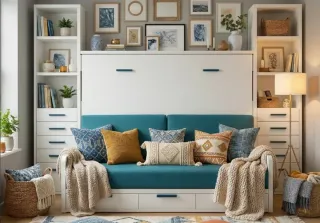 CAMA ABATIBLE CON SOFA Y ARMARIOS.