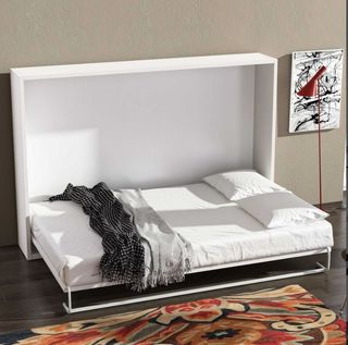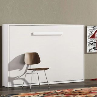Cama abatible horizontal con excelente acabado además de fuerte y segura. Oferta para colchón de 135×190 (colchón no incluído). Opción para colchón de 150. . +85€. Medidas de la cama abatible de 135 : 206 de ancho x 153 de alto x 42 de fondo estando cerrada y 159 cms cuando se abre. Incluye somier interior de láminas de madera y pistones hidrahúlicos para garantizar una apertura segura. Admite colchón de 22 cms de altura.Resto de mobiliario no incluído en la oferta. Transporte y montaje opcional 110€ (hasta 15 km)