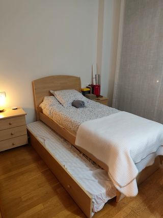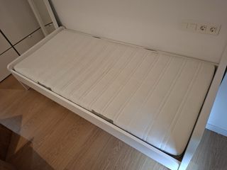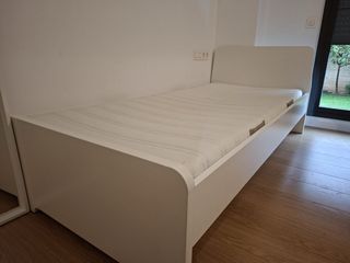 Cama nido de IKEA modelo Slakt. Incluye un colchón de una plaza y un colchón adicional extraíble. - Estructura de madera. - Cama nido con 2 cajones. - Acabado en color blanco. - Muy cuidada - Los 2 colchones estan en buen estado. Se incluyen en el precio. - El colchón principal es de muelles ensacados modelo IKEA Hovag - Todas las medidas en foto - Se entrega armada a pie de calle