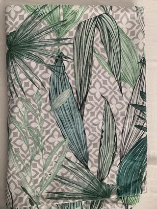 Funda nórdica con un diseño vibrante de hojas tropicales en tonos verdes y grises