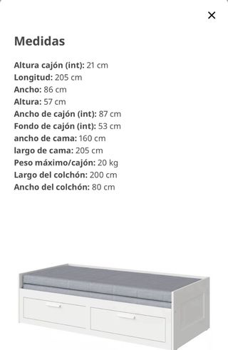 Cama Ikea SLÄKT 90x200 con 4 cajones