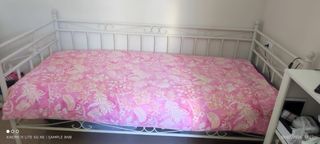 Se vende cama individual con colchón. Tengo dos. Están en perfecto estado pero vamos a cambiar a los niños de habitación y ya tienen cama por eso se venden. - Estructura de madera. - Colchón con funda de tela. los colchones se lavaron en un sitio especial para ello este verano están como nuevos