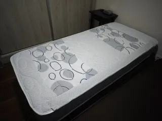 Se vende conjunto de cama individual. - Medidas: 90x190cm. - Incluye somier y colchón. - Ideal para niños por poseer laterales.