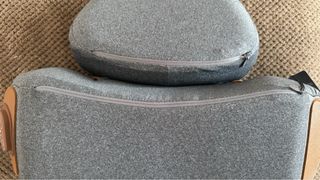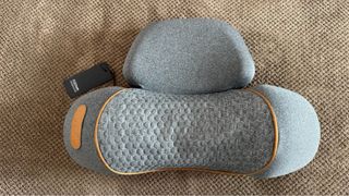 Almohada ergonómica de masaje cervical en color gris. Tiene cremalleras para extraer los forros. Sin uso, conserva la etiqueta. - Diseñada para aliviar la tensión muscular y el dolor crónico en el cuello, la espalda, el abdomen, las piernas y los brazos. - Utiliza funciones de calor, vibración y tracción para un alivio integral. - Cuenta con múltiples niveles de intensidad (baja, media, alta).