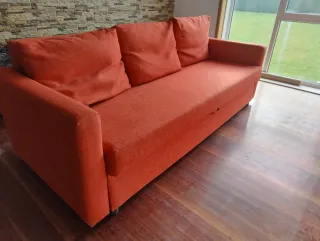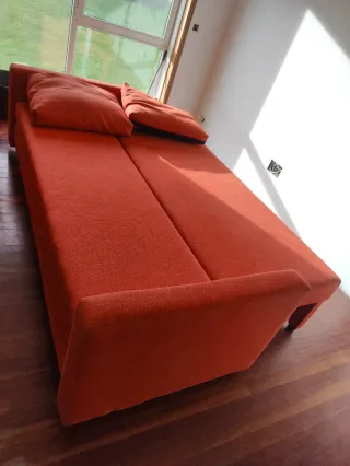 Sofá cama naranja o rojo de tela