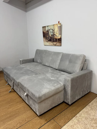 Nuevo sofa cama de terciopelo gris con chaislonge y arcon Hacemos envios rapidos a domicilio Pago contra reembolso