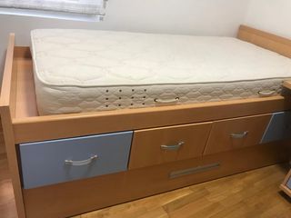 Cama nueva valio 550 euros esta sin estrenar .si quieres los cajones blancos les puedes poner papel de pegar