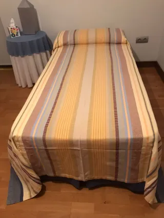 Colcha para cama de 135 cm con un bonito estampado de colores combina con todos colores para cama de 1:35cms.de muy poco uso ésta como nuevo precio 35 ERS.sy acé envíos! - Diseño con lazos. - Tejido suave y ligero.