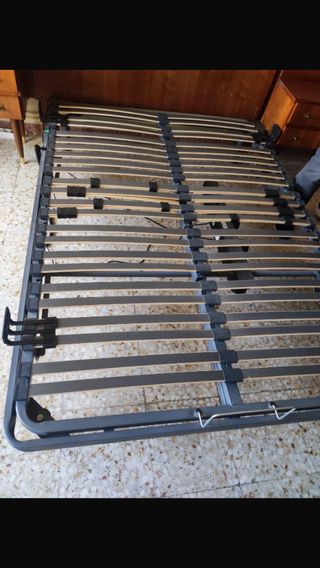 Base de cama articulada de matrimonio con somier de láminas. - Estructura metálica. - Láminas de madera. - Soportes de plástico. Colchón incluido ,se vendepor comprar 2 camas individuales