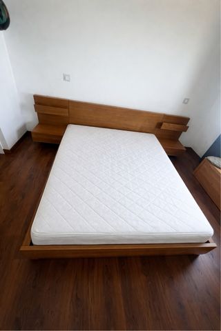 Cama matrimonio madera + mesita noche
