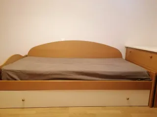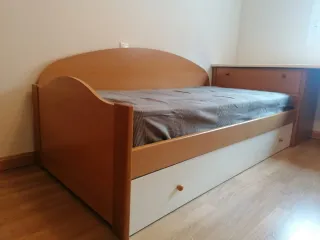 Cama nido de madera con un colchón incluido. Ideal para aprovechar el espacio. - Medidas: 90 x 190 cm. - Incluye colchón. Es para recoger en Gijón